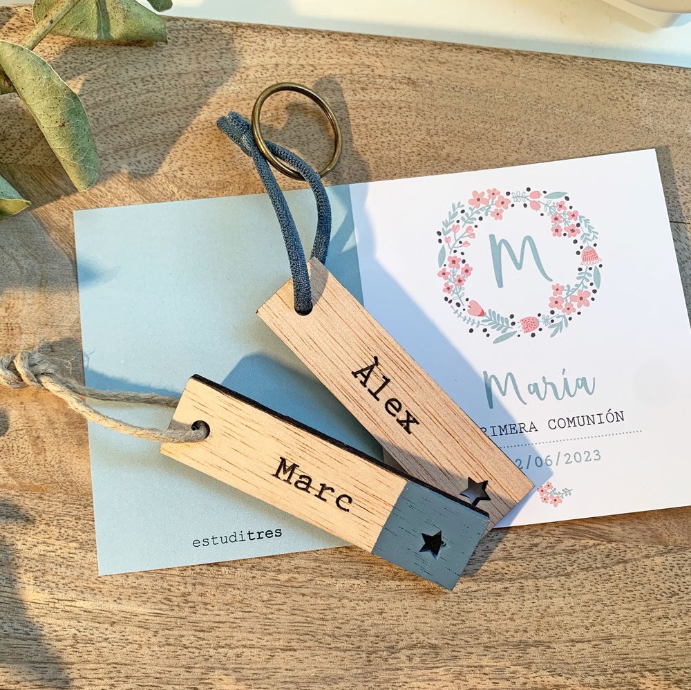 Todos los llaveros vienen empaquetados en un sobre de celofán y con una cartulina con el diseño del rosco floral que elijas