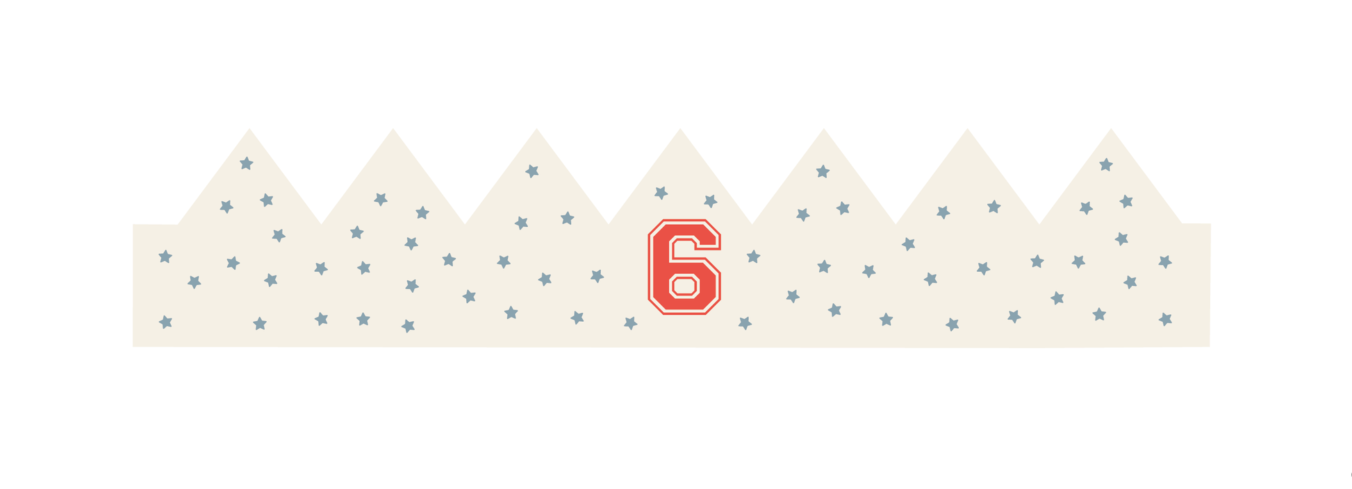La corona lleva el mismo estampado que toda la papelería de la fiesta y lleva el número por separado para pegar y despegar las veces que quieras.