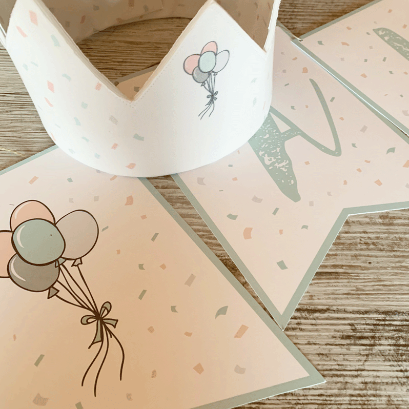 La corona lleva el mismo estampado que toda la papelería de la fiesta y lleva el número por separado para pegar y despegar las veces que quieras.