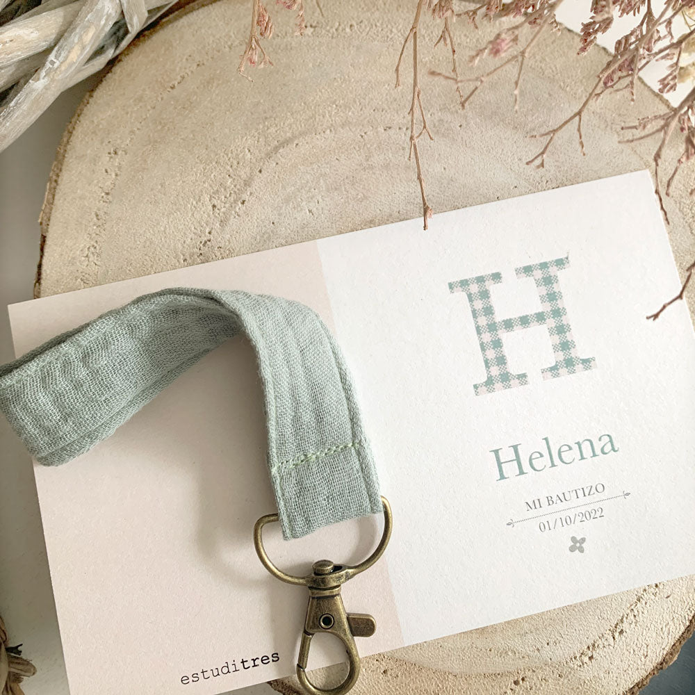 Puedes elegir un estampado geométrico para el llavero o bien una tela de doble gasa en un tono liso.