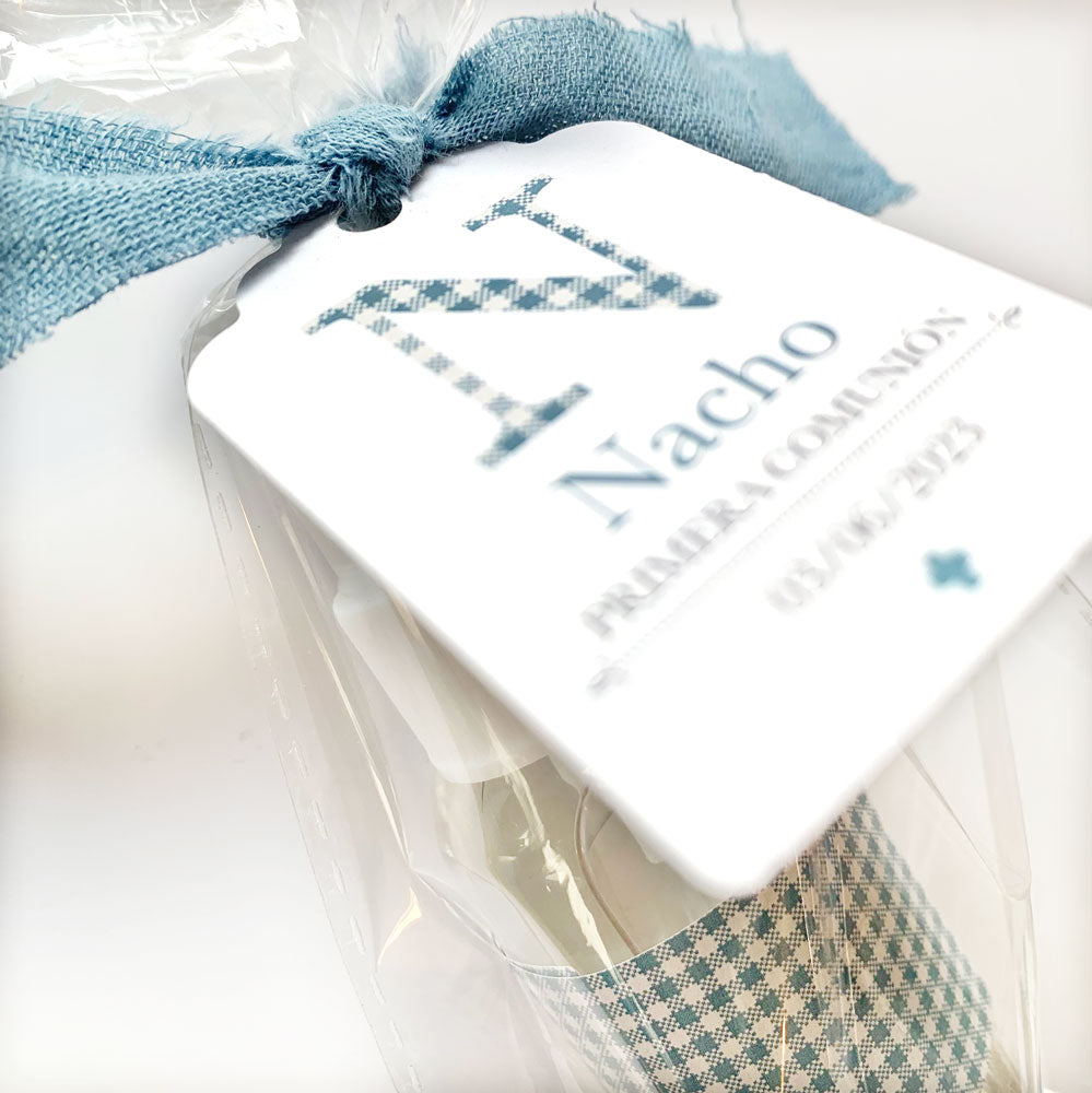 Detalle Home spray Primera Comunión Colección inicial estampados geométricos