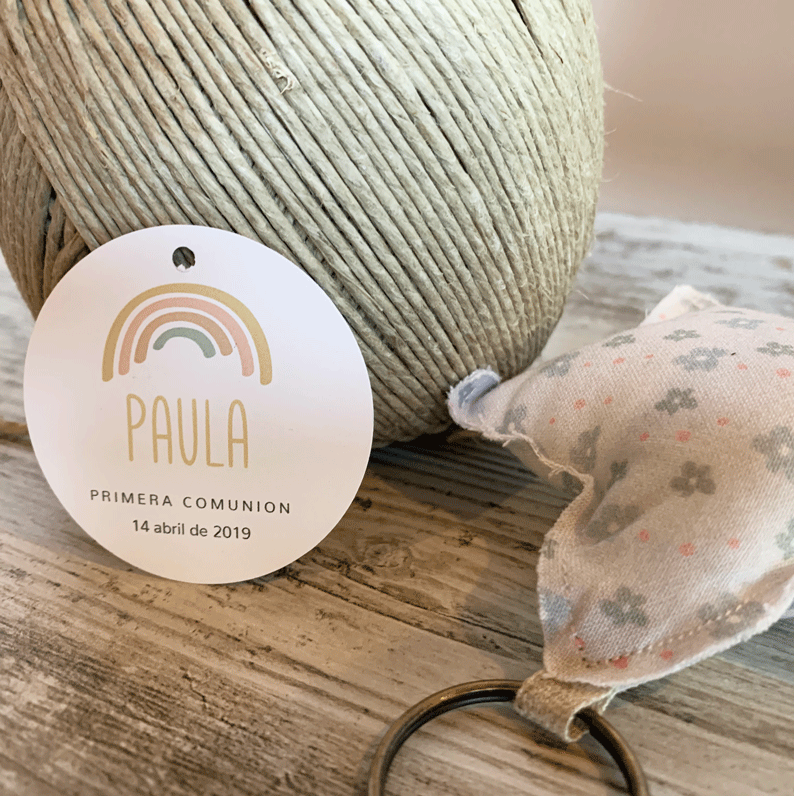 Pack de 10 etiquetas con el nombre y el diseño rainbow.