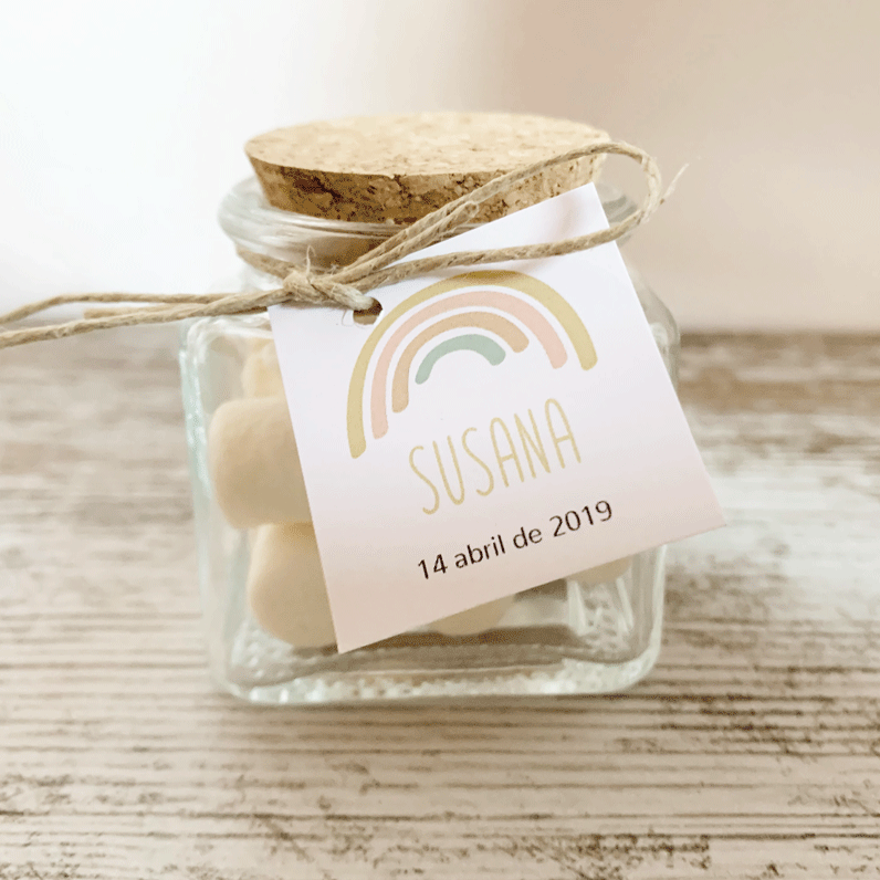 Pack de etiquetas personalizadas para que decores el candy bar, la mesa buffet o para que cada invitado tenga en su mesa un detalle de la celebración.