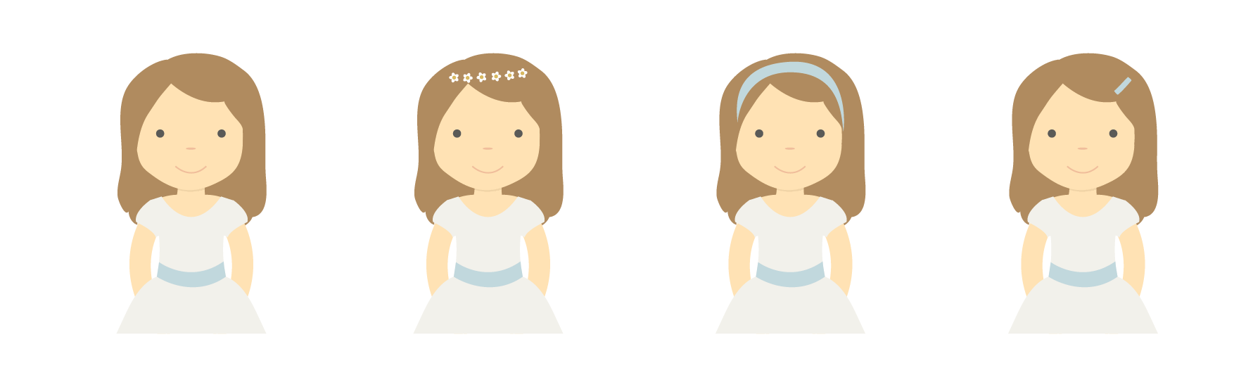 Detalles de la niña : tipo de pelo, color de pelo, adorno del pelo, color de piel, si lleva gafas. Tenéis la leyenda en las fotos.
