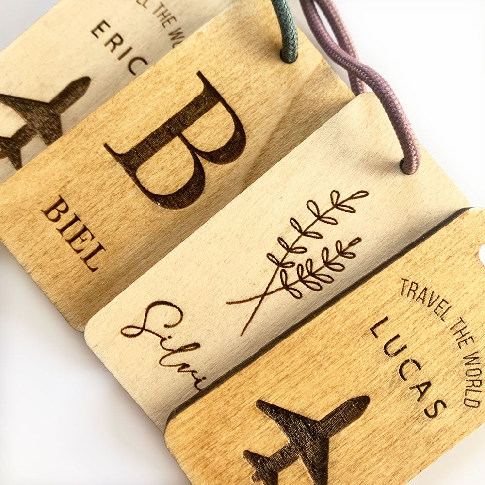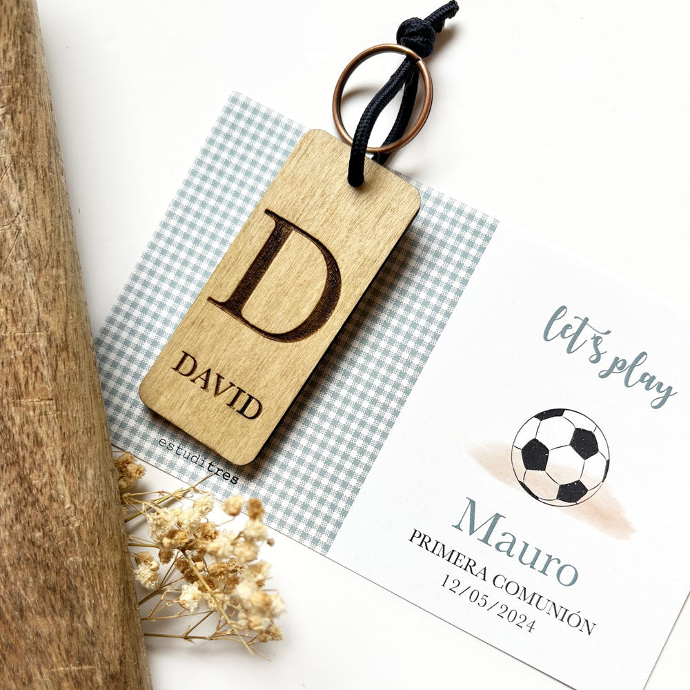 Bonitos llaveros de madera personalizados con el nombre de cada invitado