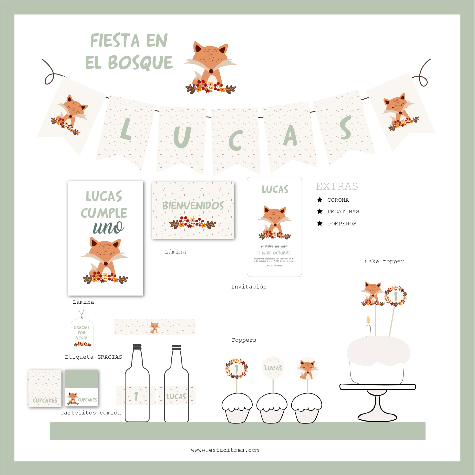 A parte del pack hay productos a juego que puedes adquirir por separado como la corona de tela a conjunto con el cumple, etiquetas para pomperos etc..