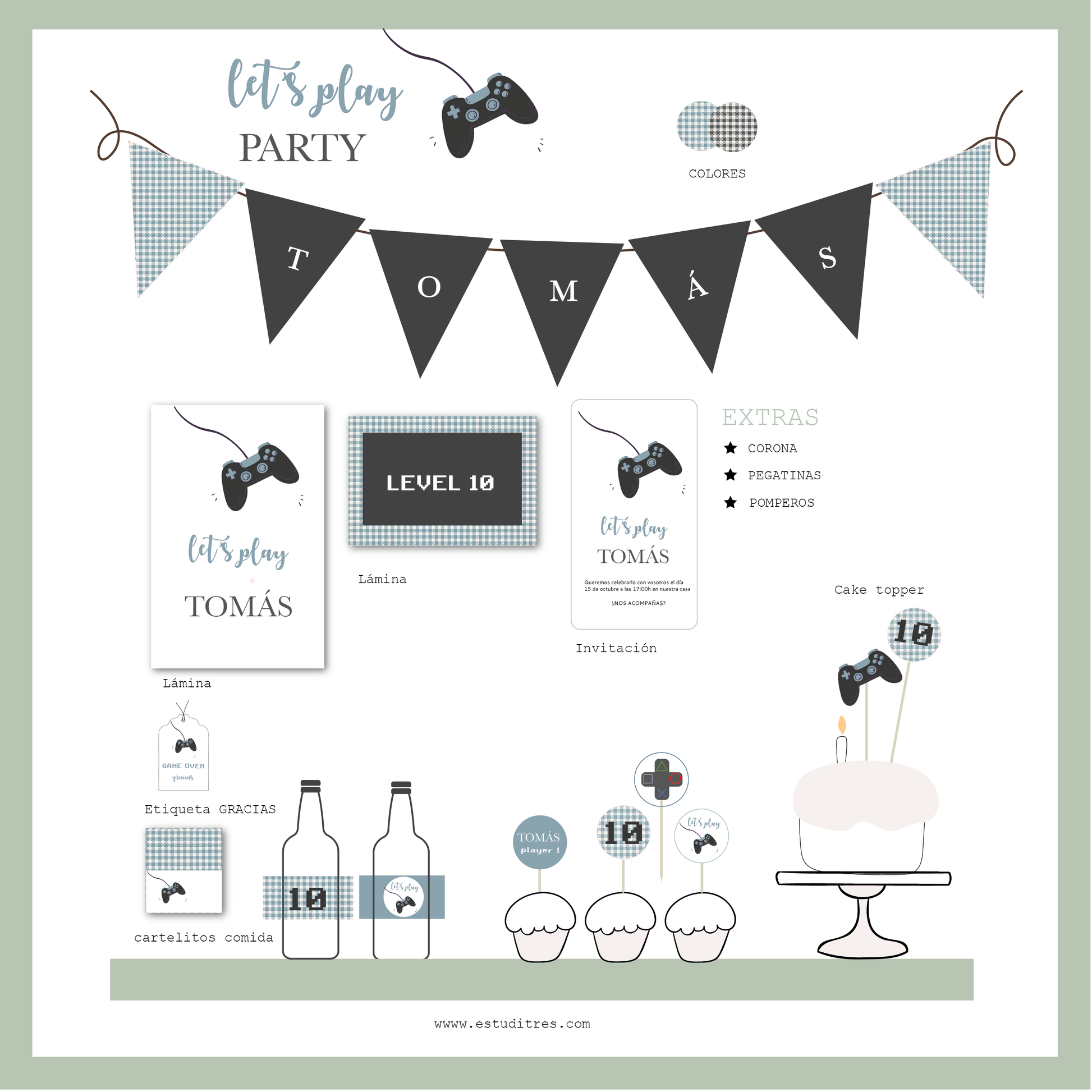 A parte del pack hay productos a juego que puedes adquirir por separado como la corona de tela a conjunto con el cumple, pomperos, pegatinas, invitaciones en papel..