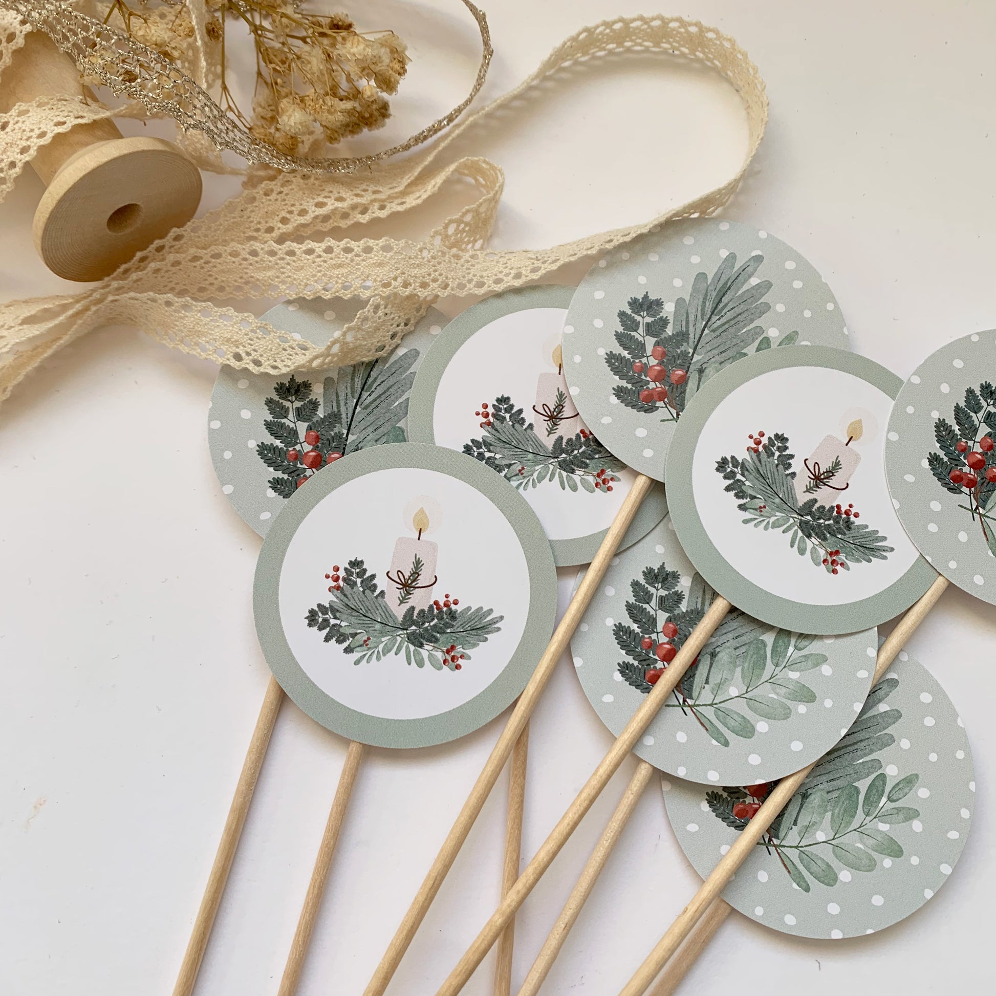 Decora el candy bar de tu celebración, la mesa de navidad con estos preciosos toppers que puedes incluir en jarrones de flores o pincharlos en el buffet.