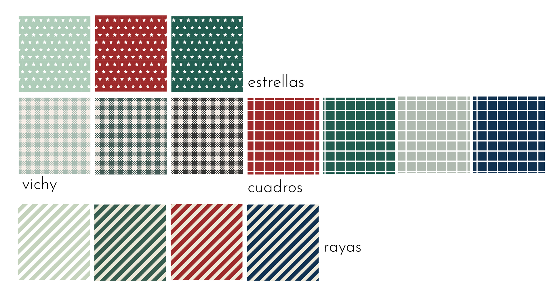 Tienes todos los estampados que aparecen en el archivo disponibles y dos tipografías para personalizar la portada. En el caso que sea una marca podéis mandarme el logo o tipografía de vuestra marca para que aparezca en la portada.
