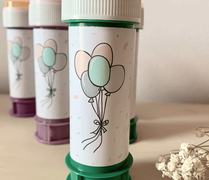 Personaliza las etiquetas de los pomperos a conjunto con el diseño de la fiesta.