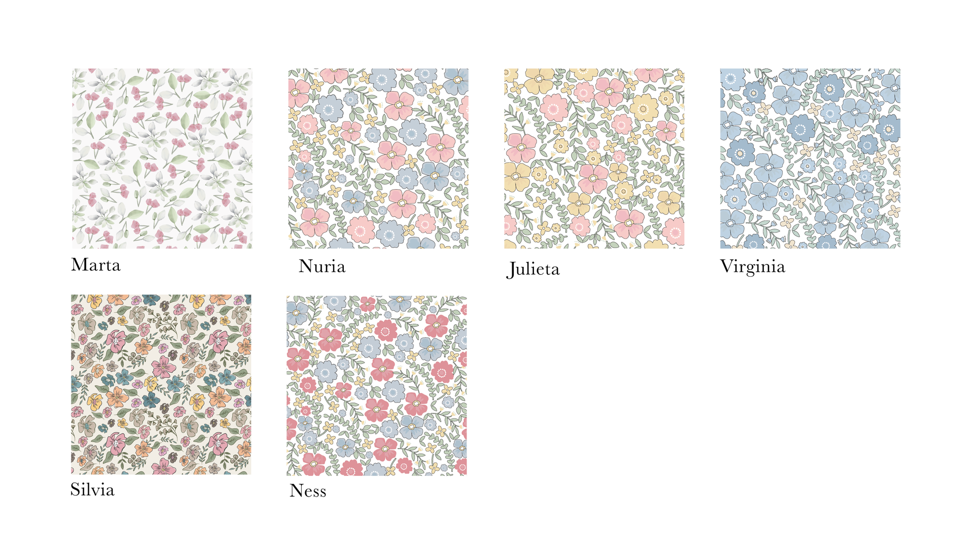 Pulseras con nuestras telas liberty de Popelin viscosa convertidas en cintas y en varios estampados, acompañados de mini medallitas escapulario de metal chapadas en oro o plata.