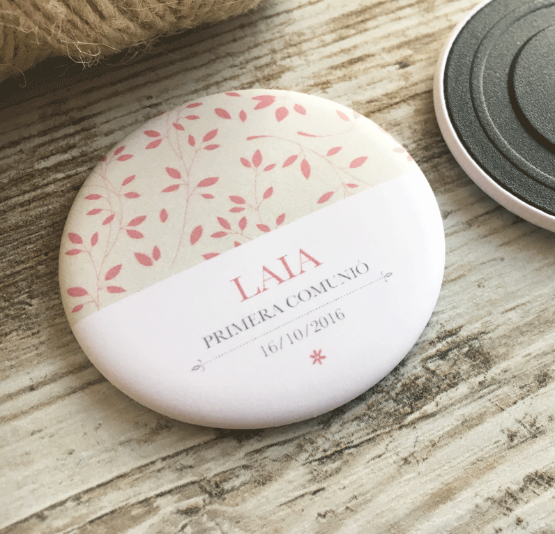Si lo que te gusta es regalar algo que sea útil pero bonito a la vez el imán personalizado es el detalle perfecto. Escoge el color que más te guste y lo personalizamos con el nombre y fecha de la celebración.