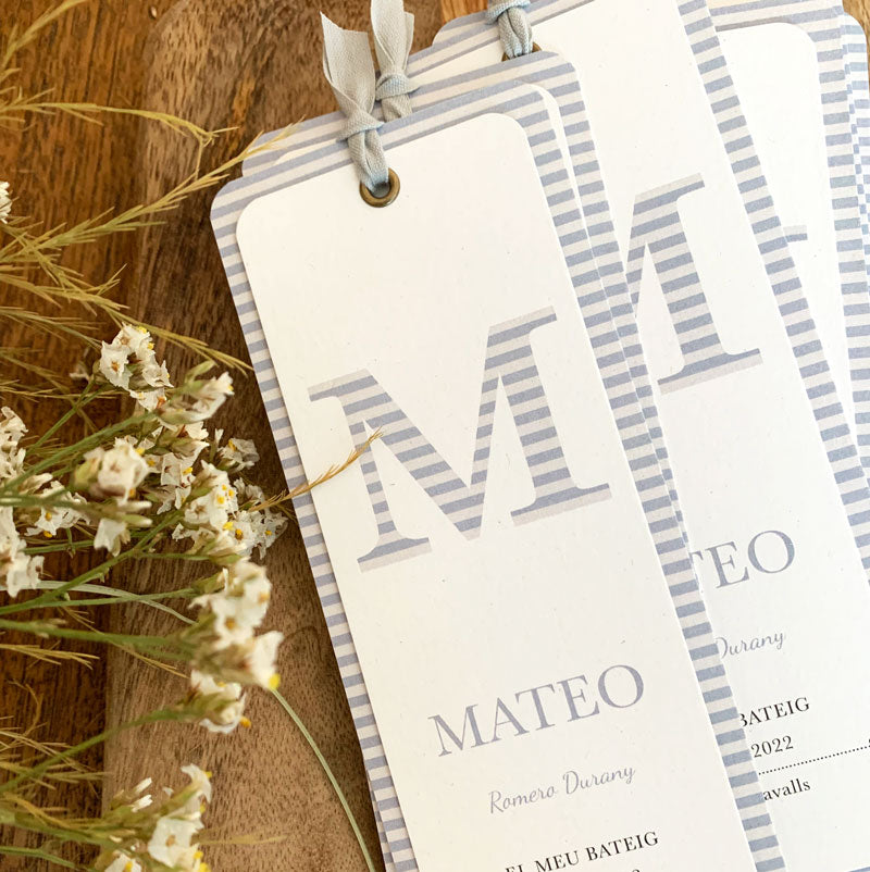 Recordatorio bautizo punto de libro "inicial" estampados geométricos