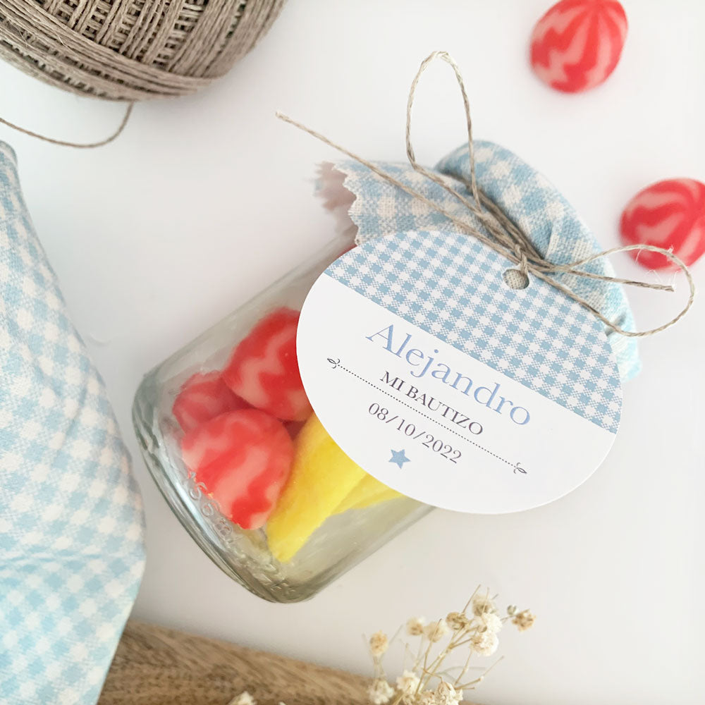 Recordatorio bautizo tarro dulce "estampados geométricos"