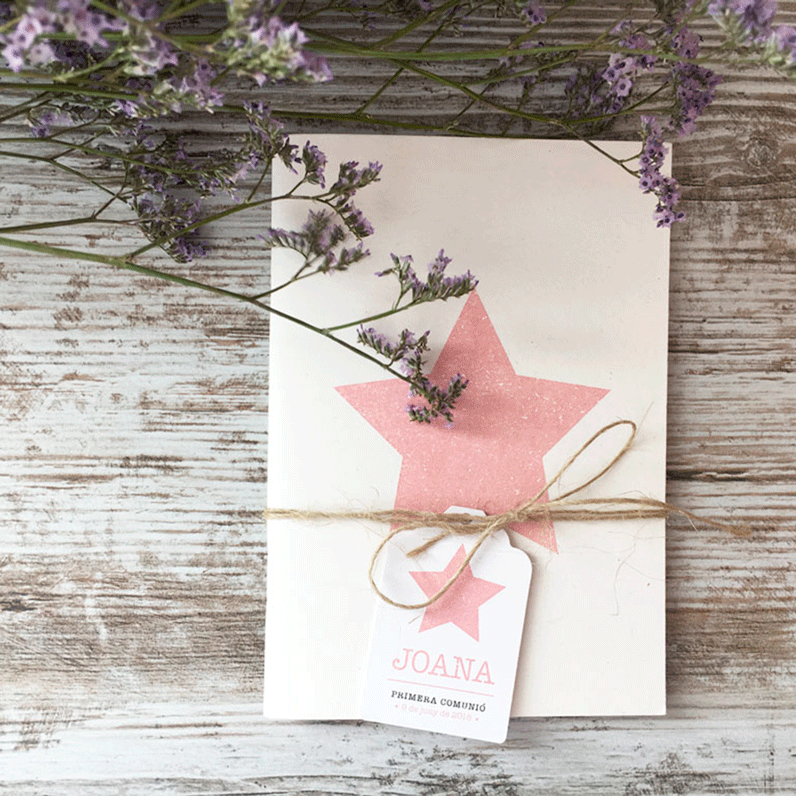 Libreta con el diseño Old star en la portada tamaño A6 ( 10 x 15 cm) y con la etiqueta a conjunto atada con cordel natural.