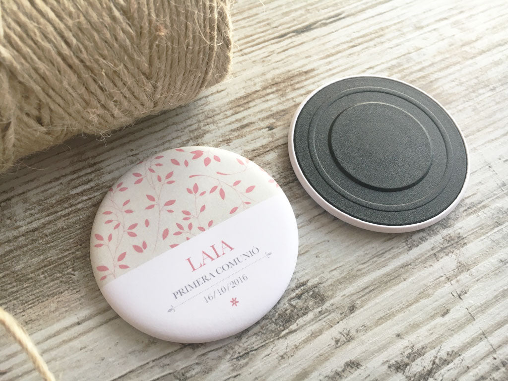 Si lo que te gusta es regalar algo que sea útil pero bonito a la vez el imán personalizado es el detalle perfecto. Escoge el color que más te guste y lo personalizamos con el nombre y fecha de la celebración.